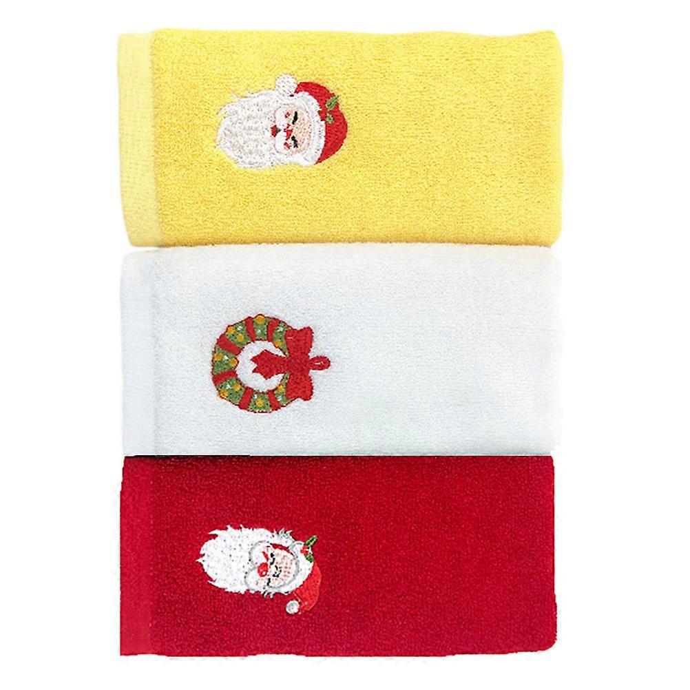 3pcs Christmas Embroidered Cotton Towels for Face and Kitchen Use Soft Red, White, Yellow