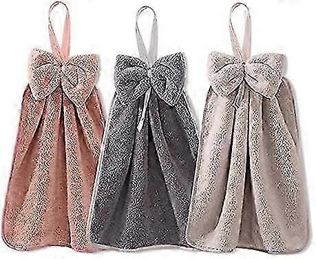 3 Pcs Bow Hand Towels with Hanging Loop (3 Colors)