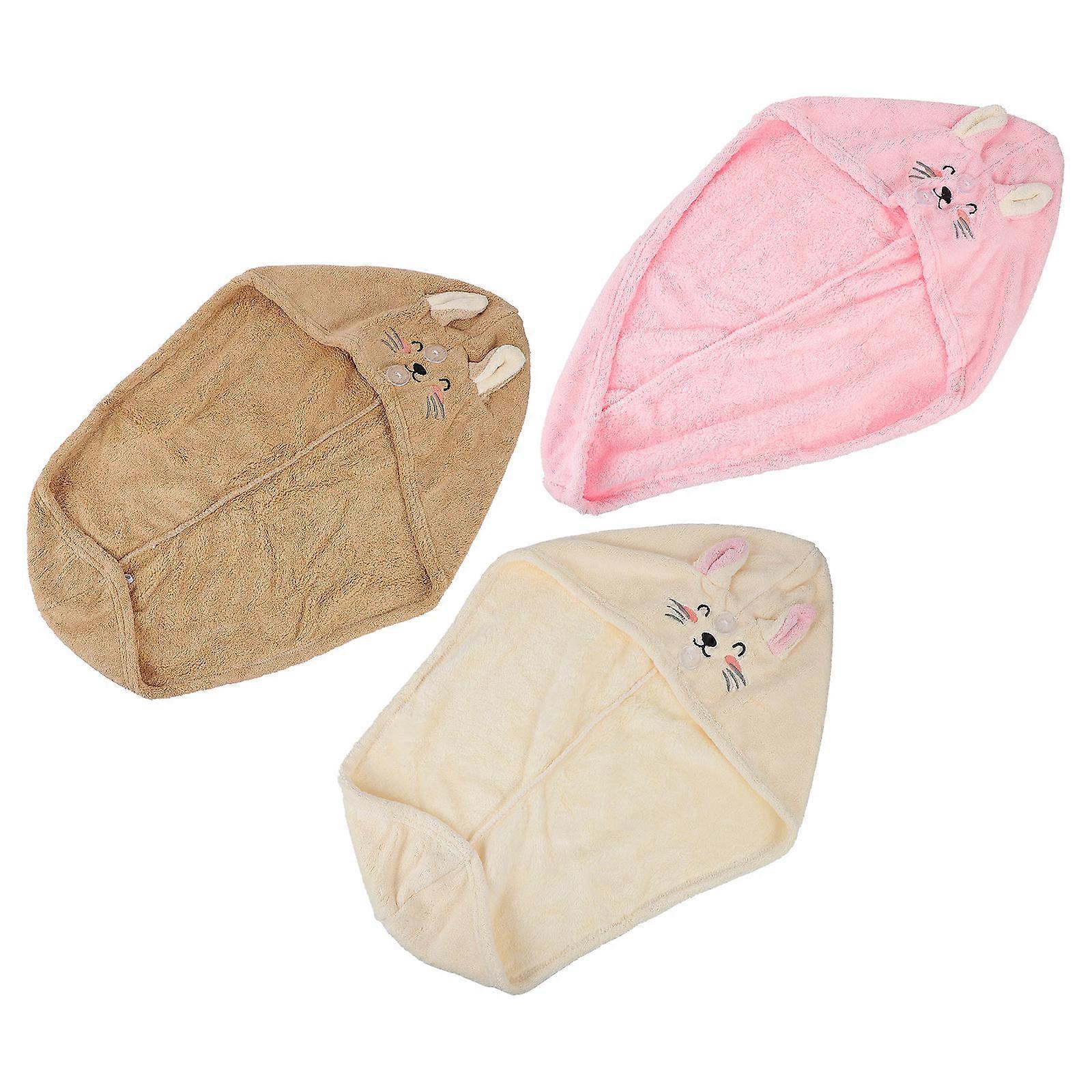 3pcs Microfiber Hair Towel Wraps Fast Drying, Super Absorbent Turbans with Cartoon Embroidery for Daily Use, Travel & Spa for Women