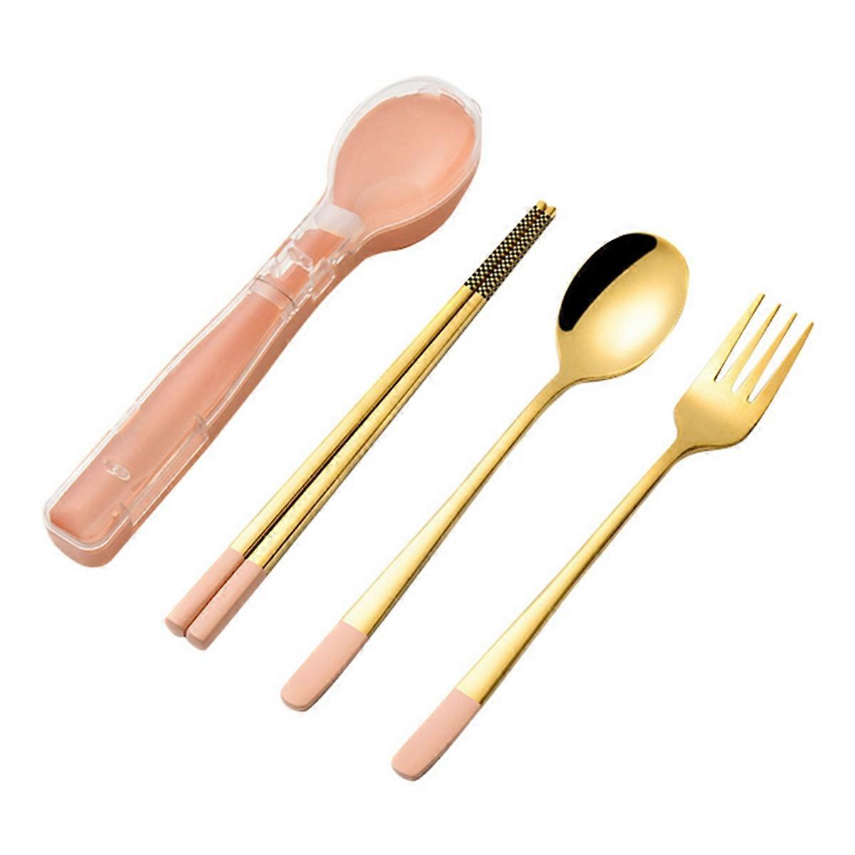 3pcs Stainless Steel Dinnerware Set Camping Travel Sets Pink
