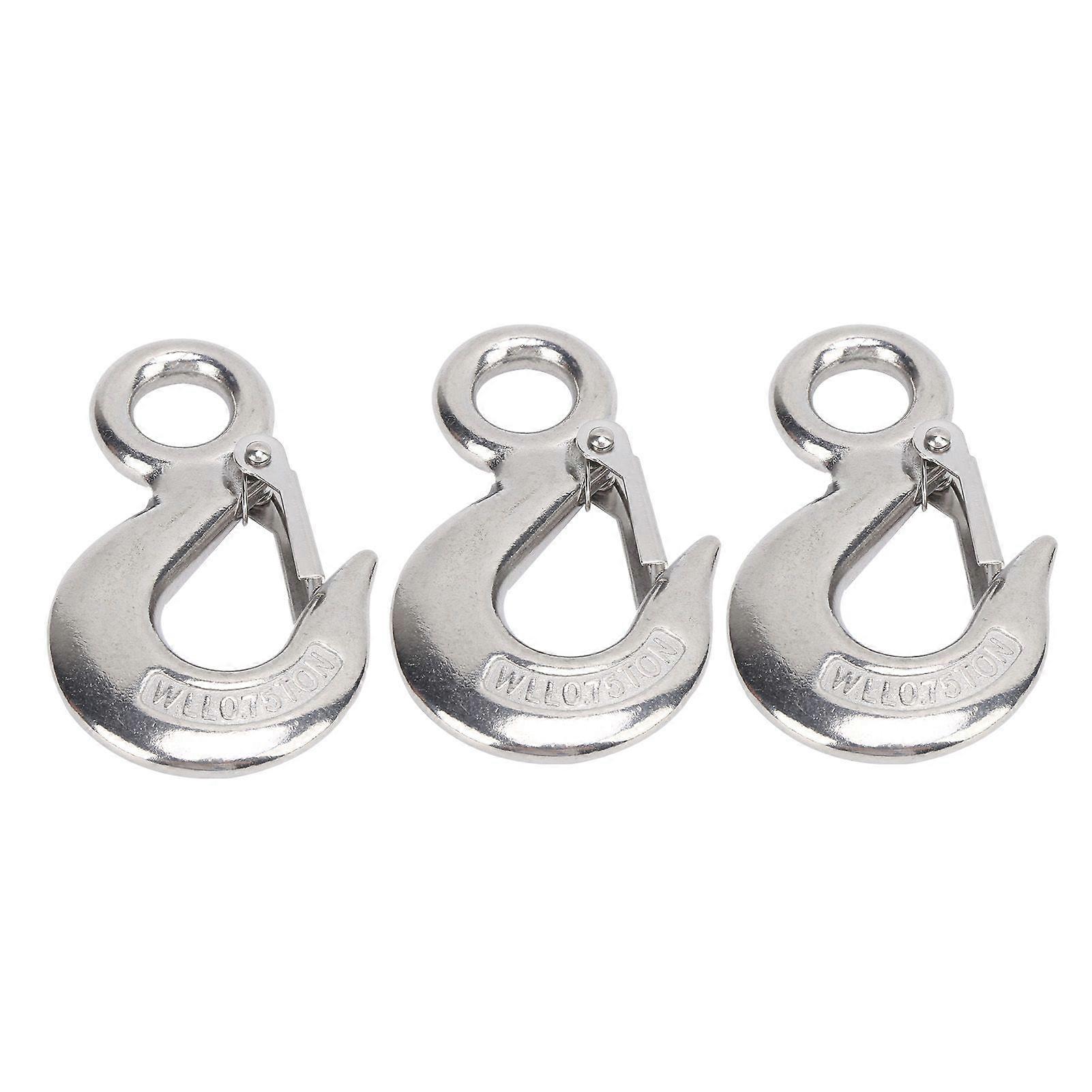 3pcs Eye Slip Hook with Safety Latch Stainless Steel Marine Lifting Eye Hoist Sling Hook0.75T
