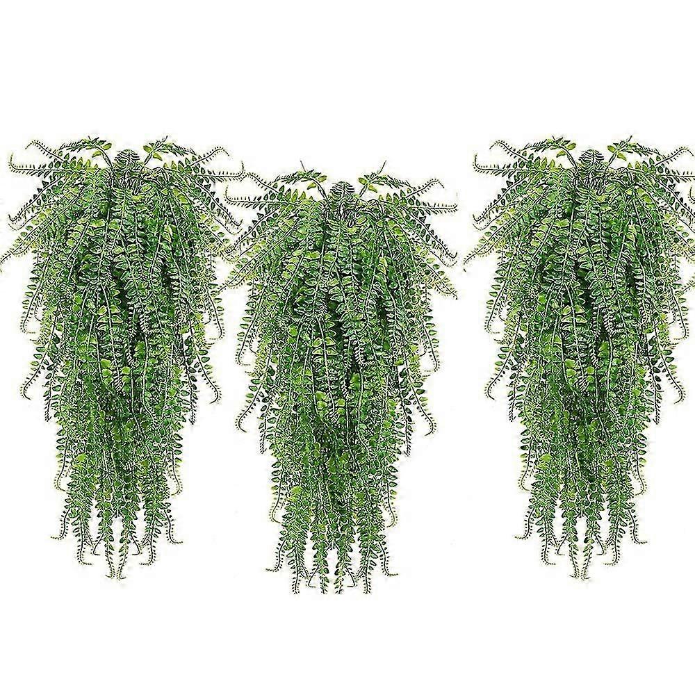 3 Pcs Artificial Hanging Ferns Plants Vine Fake Ivy Boston Fern Hanging Plant Outdoor UV Resistant