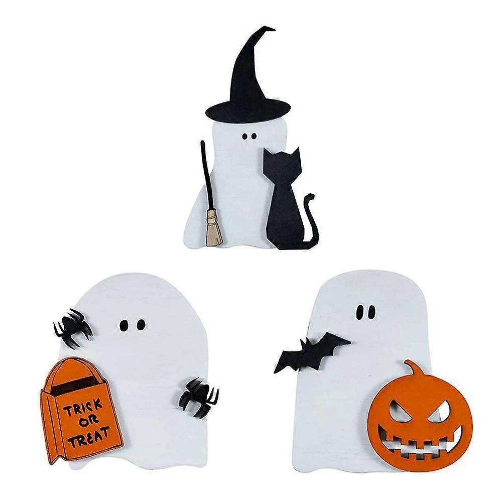 3pcs Halloween Wooden Ghost Sign Decoration Table Ornament Home Office Decor