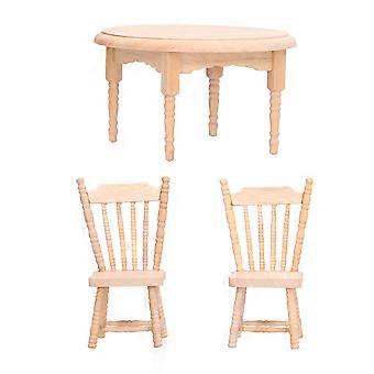 3pcs 1:12 Wooden Dollhouse Round Table Chair Simulated DIY Miniature Furniture Accessories