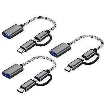 3pcs 2 In 1 Usb3.0 Micro Usb Type-c Otg Data Sync Adapter Cable For Samsung
