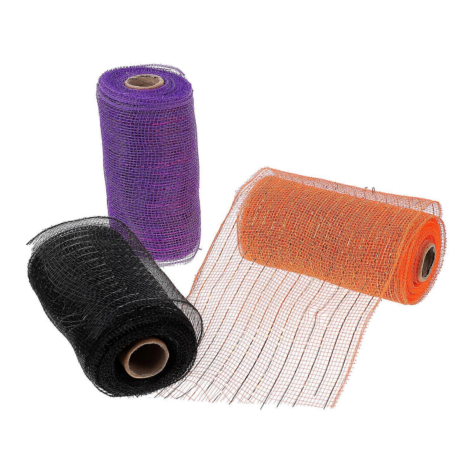 3 Rolls Metallic Foil Mesh Ribbon Halloween Decorative Crafting Black Deep Purple Orange Wreaths DIY Projects Festive Decor
