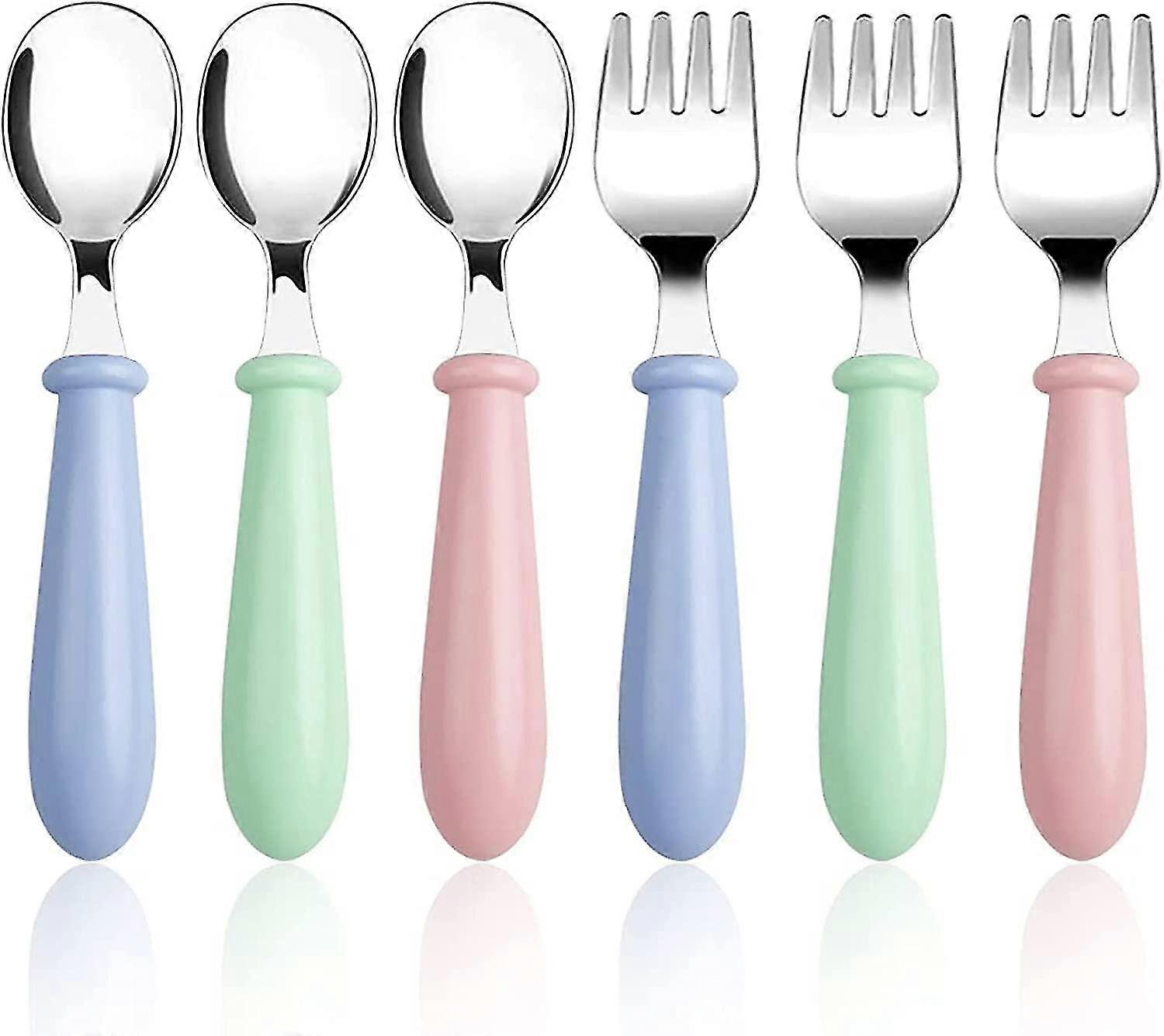 3 Set/6 Pcs Baby Fork And Spoon, Toddler Utensils Stainless Steel Baby Forks And Spoons Silverware Set With Round Handle Kids Silverware Children's Fl