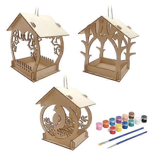 3 pcs bird feeder, parrot seed tray, nest Birdhouse unassembled DIY hideaway craft for kids to build and paint toy.