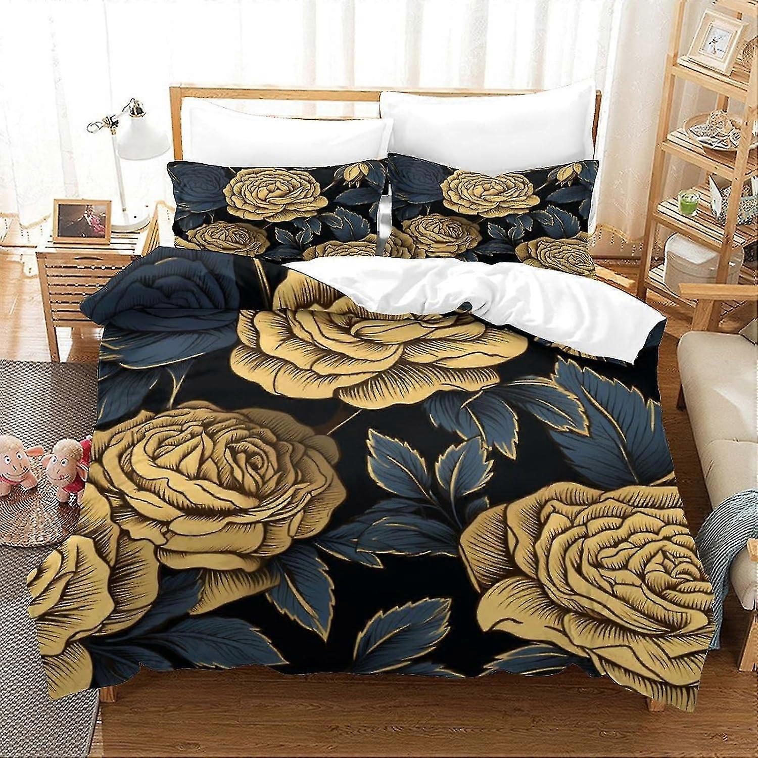 3 Piece Roses Comforter Set 3D Gothic Art Printed Bedding with Zip Closure, Super Soft Microfibre