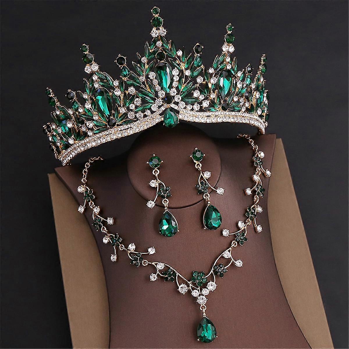 Baroque Wedding Crown for Bride 3-Pack Earrings Jewelry Set Champagne Crystal Birthday Gift Gold