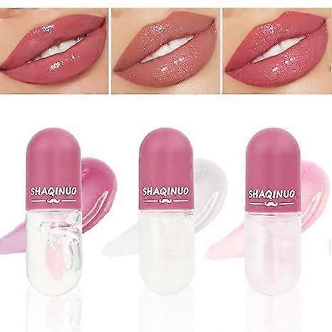 3 Pcs Color Changing Lip Gloss Lip Oil Tinted, Pink Magic Mood Lipstick,Temperature Color Change Lip Stain Lip Balm, Longlasting Lips Will Not Dry Out