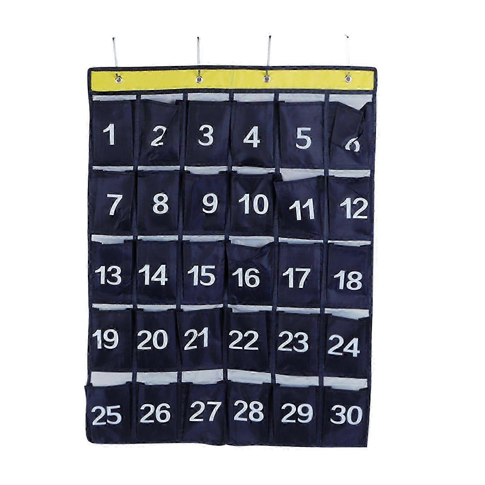 30 Pockets Wall Hanging Storage Bag Phone Holder Hanging Organizer with Numbers Navy Blue