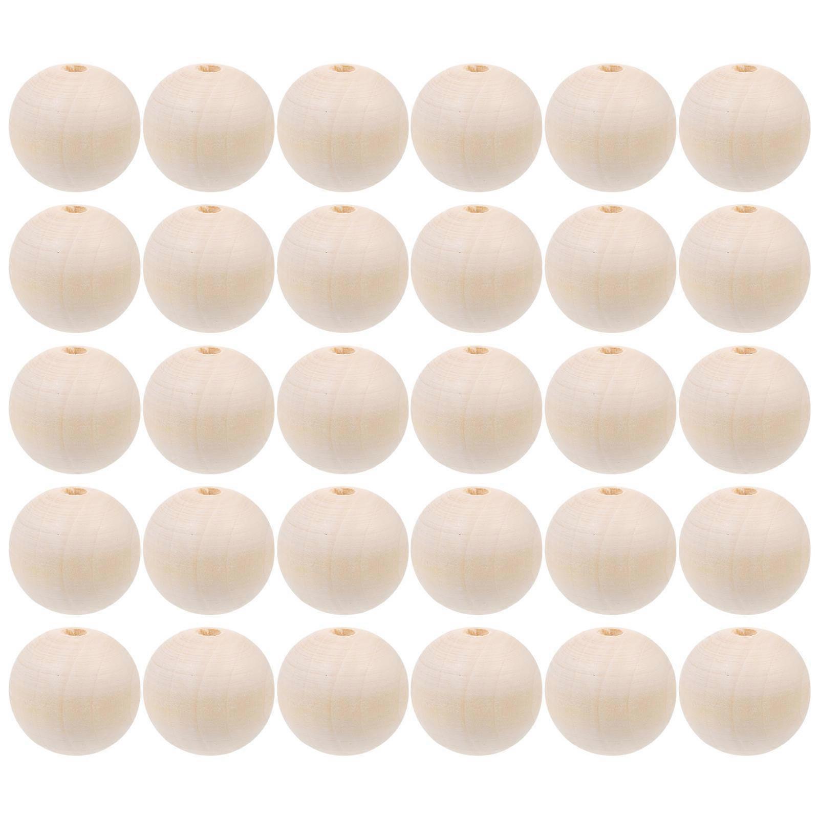 30pcs Wooden Beads Unfinished Loose Beads for DIY Craft