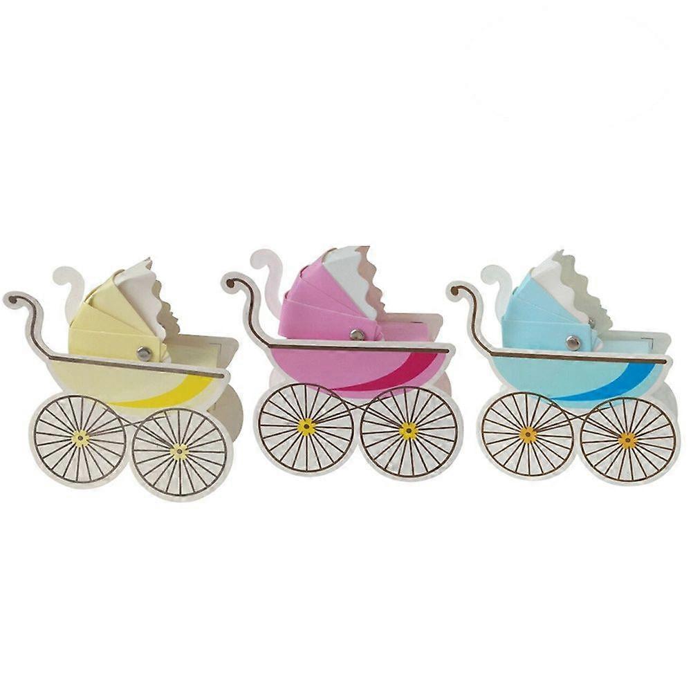 30pcs Wedding Candy Box Stroller Shape Party Favor Paper Gift Boxes Event Party Supplies (Beige + Blue + Pink)