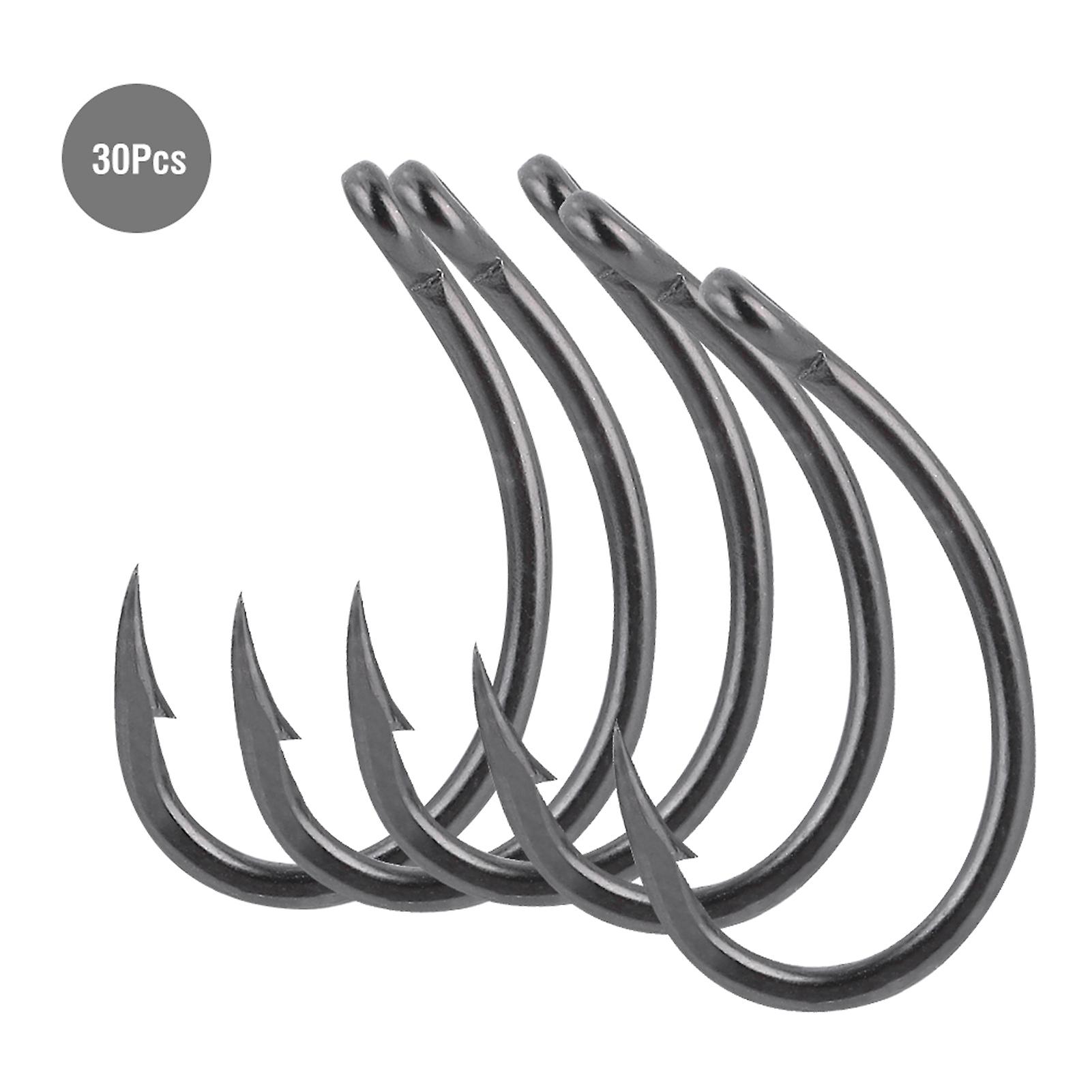 30pcs Perforated Sharp Barbed Carbon Steel Hook Fishhook for Sea Fishing (10#)