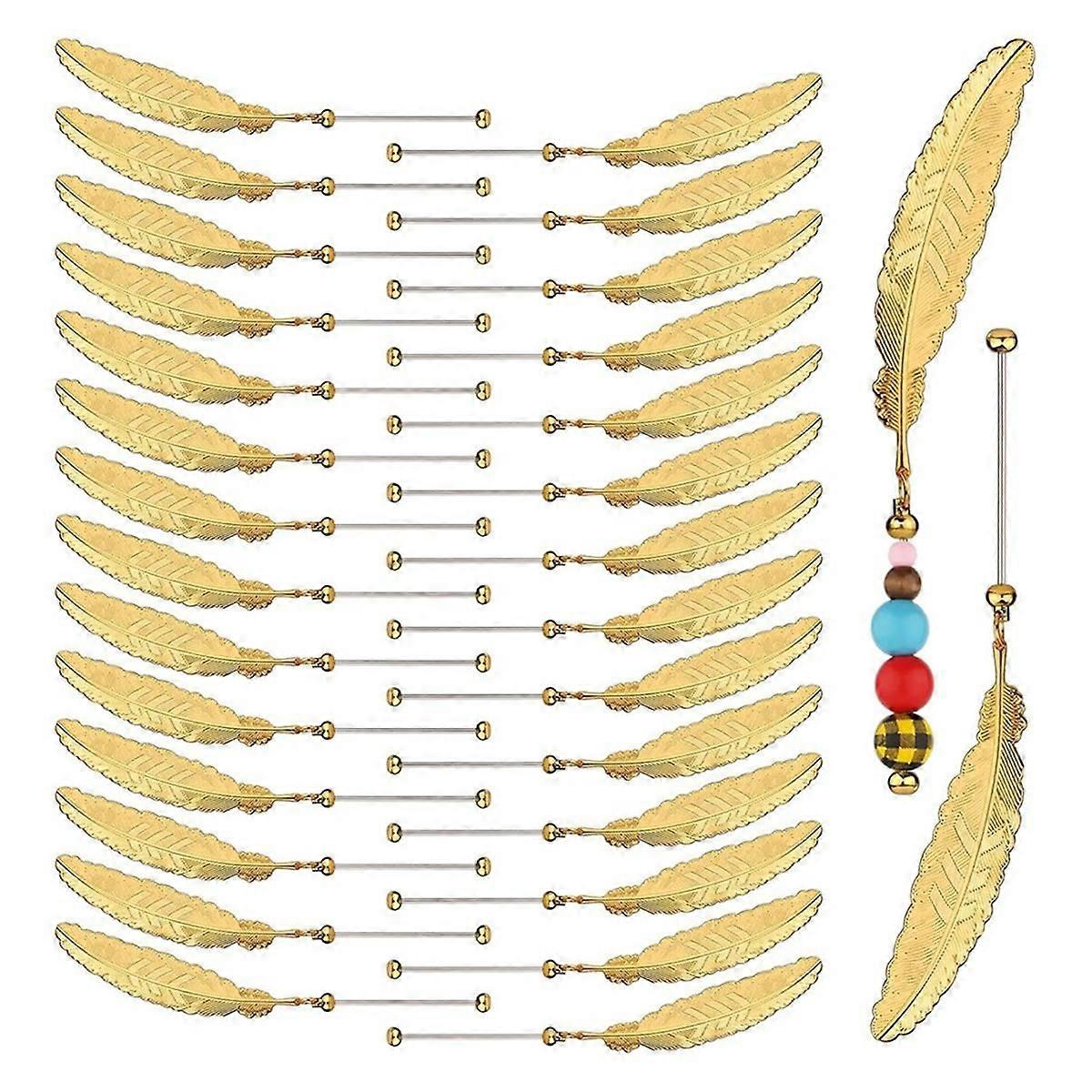 30pc DIY Beadable Bookmarks,Blank Bar with FeatherPendant Beaded Page Holder Book Mark CraftMaking