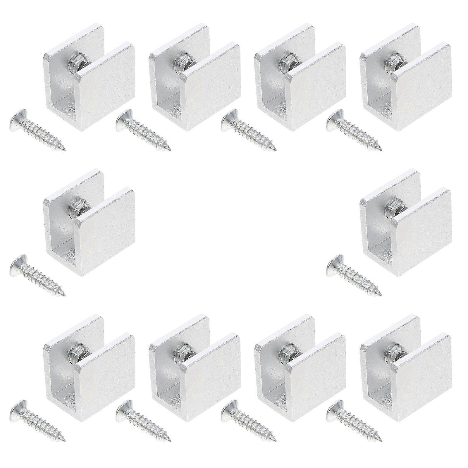 Glass brackets are commonly used connection accessories for DIY furniture. They are made of space aluminum material, which is durable and not easy to deform. It will be a good choice for you to fix the floating glass shelf and can bring you a better experience. Features - Material: Space aluminum. - Color: Silver. - Size: 1.90X1.80X1.35cm/ 0.75X0.71X0.53in. - [ ]The glass clip is made of space aluminum material, which is- resistant, tough, non- rusting and durable. - [Suitable for]Suitable for 6- 8 mm thick glass, for fixing glass, or wood panels in bathrooms, kitchens, rooms. - [Easy to Install]It can be installed without drilling holes in the glass, the package includes screws, the installation is simple and convenient, and a practical DIY accessory. - [ Features]Perfect for fixing floating shelves for bathroom glass shelves, cabinets, displaying collections, organizing books, etc. - [Package Contents]Package includes 10 shelf clips and 10 screws, which are sturdy and durable, and the silver look looks stylish and elegant. Package Including 10 x shelf clips 10 x screws Package list: 30 x shelf clips 30 x screws