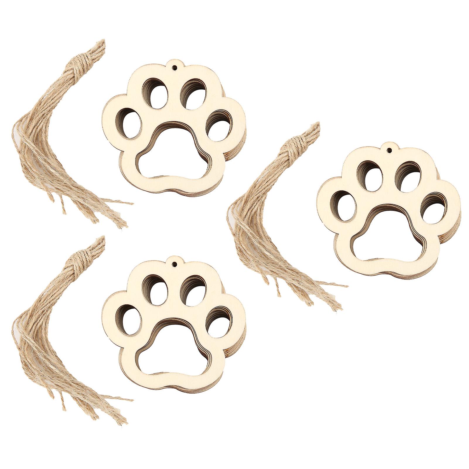 30Pcs Wood Pieces Hole Natural Wood Material Smooth Surface Cute Wood Piece Bear Paw for Decoration