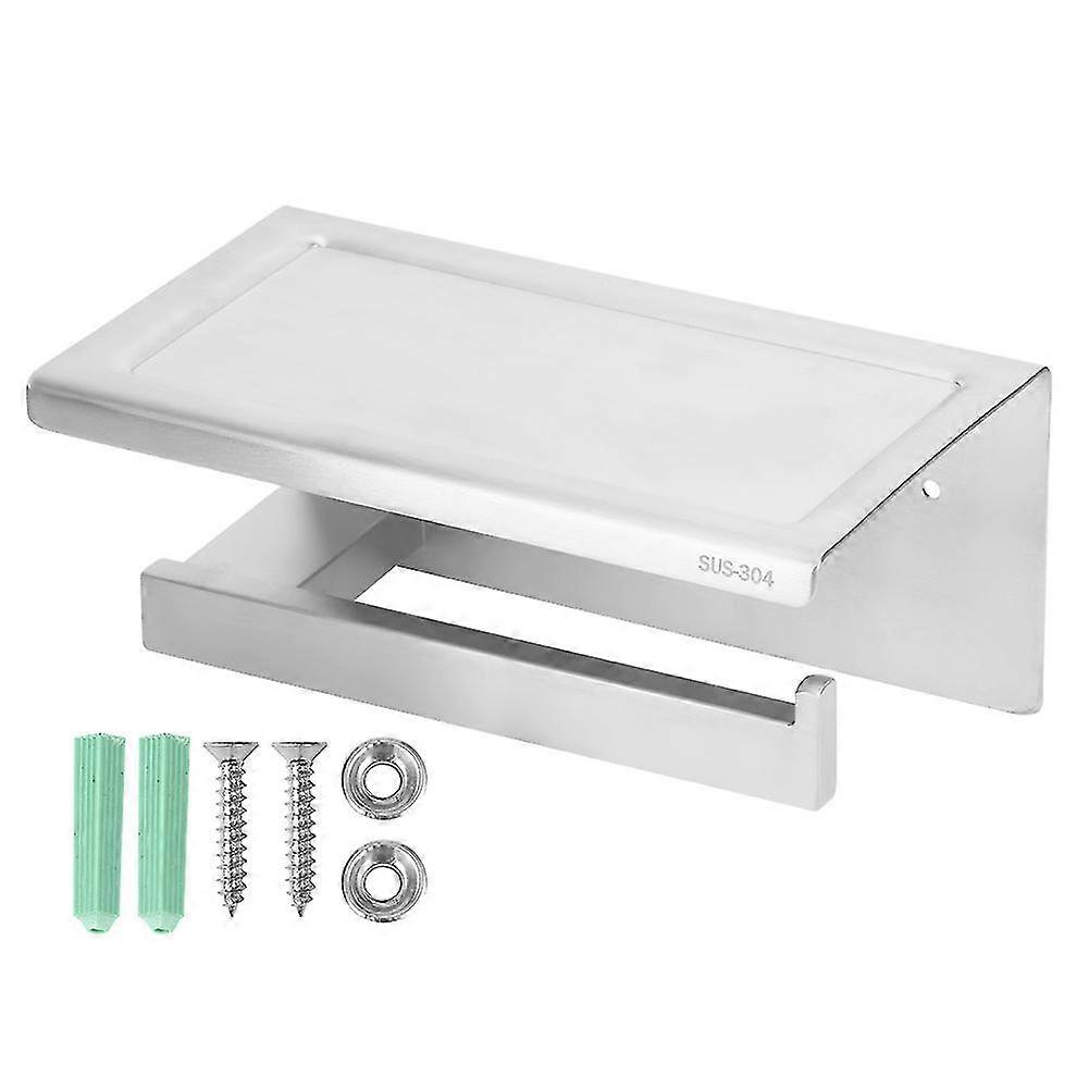 304 Stainless Steel Brushed Toilet Roll Paper Rack Tissue Holder with Shelf Bathroom Accessory