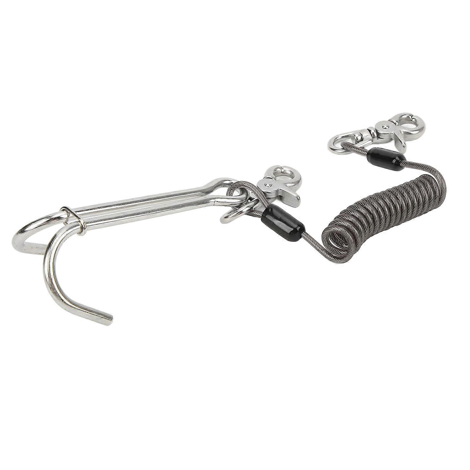 316 Stainless Steel Diving Current Hook Double Reef Drift Hook with Spiral Coil LanyardBlack