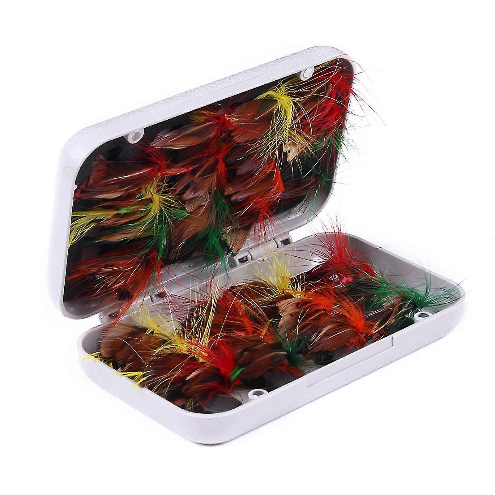 32Pcs/Box Fly Fishing Lure with Metal Sharp Hook Colorful Feather Trout Bass Fishing Artificial Dry Flies Bait Outdoor Fishing Accessories