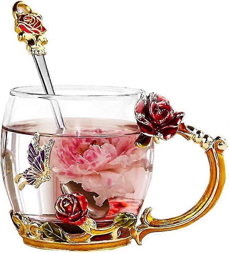 HANDMADE:The Flower Tea cup is made of high-quality Lead-Free eco-friendly sturdy glass material, each cup is unique, finely crafted and light body. The hand-drawn flowers on the cup are durable, even the time goes by, they will last forever. THE IDEAL GIFT: The flower teacup is made of crystal glass and design with crystals and enamel, making the product looks elegant and novel, it is a perfect gift for your mother, teacher, or other elders, of course your girlfriend as well, on birthday, Mother's Day, Teacher's Day, Valentine's Day, etc. This novelty glass mug brings great fun and good mood. The visual appeal makes this an exciting product for any home, restaurant, and office. INDIVIDUAL GIFT BOX PACKAGE: Single enamel glass mug is well packed in the gift box,it can be sent as a gift directly.Include: 1x Glass Mug , 1 x Spoon , 1 x Gift Box Specification: Name: Flower Glass Mugs/Cups Material: lead-free glass and metal Volume: 320ml / 11.2oz NOTE: 1.Avoid moisture: In wet conditions, the silver-plated surface of the enamel handle may be oxidized, so air circulation should be maintained. 2.Avoid high temperature: The cup should be placed in dry and normal temperature environment, don't place the cup in high temperature environment, such as microwave. 3. Avoid corrosion: When you take the cup, your hands better be clean and free of grease. After cleaning, it is best to wipe it with clean cloth, so that the cup can last longer. 4. About cleaning: Please wash it with clean water below 50 C, after cleaning, please wipe it with a soft cloth.