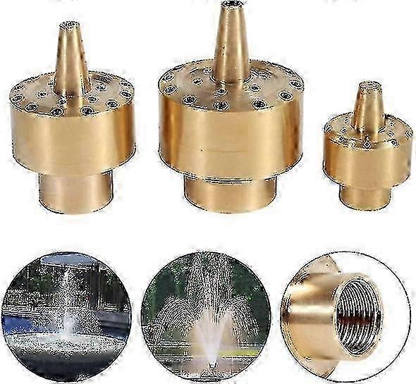 Porous Diffusion: The fountain nozzle is intended for porous dispersion. The center of the water column and the spray nozzle form three layers of outward parabolic spray. The water shape is very beautiful for house yard, garden pond, park fountain, hotel fountain decoration. High quality: The nozzle is made of quality brass, corrosion resistant and durable, long service life, beautiful golden brass color, high-end appearance. Add water volume: The firework nozzle increases its spout effect by adding water volume. pond water. Thus, a very heavy and powerful effect is achieved with little change. Different Sizes: Different sizes for your occasional fountain decoration. This fountain spray nozzle can be used in many different ways to create dramatic effects. Easy to install: It is easy to install, it only requires PVC tubing and a submersible water pump. Beautiful design, easy to install, suitable for a wide range of ponds and fountains.Product Specifications: 6 pointsWorking Pressure: 40KpaWorkflow:5m3 or hSpray height: 2.0mColor: GoldQuantity delivered: 1 piece Note: Due to the light and screen setting difference, the item's color may be slightly different from the pictures. Please allow slight dimension difference due to different manual measurement. Sold by-YJL official store