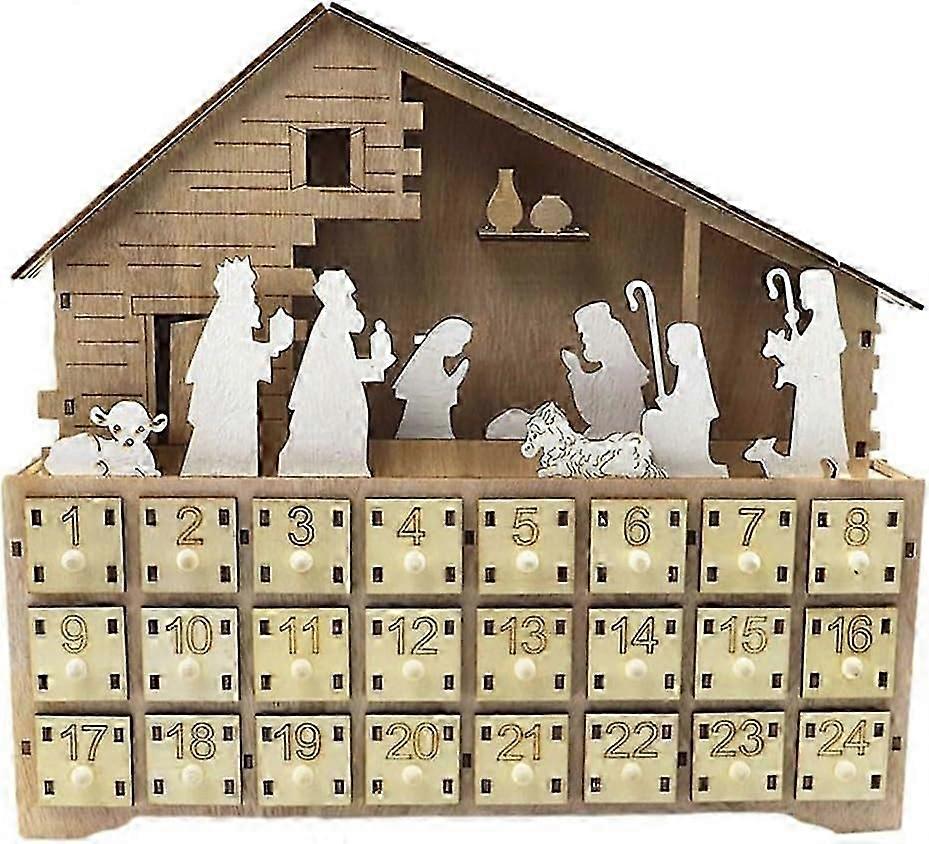 34.5 * 31 * 5cm Boxwood Christmas Countdown Blind Box For Christmas LED Calendar Cabinet Wooden Desk Calendar