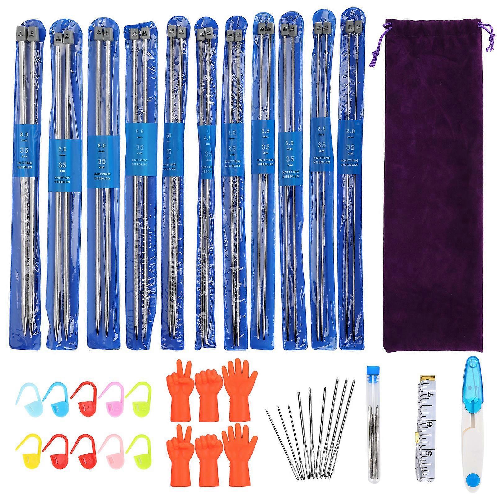 35cm/13.8in Stainless Steel Knitting Needle Set Single Pointed Crochet Hook for Sweater DIY Weaving
