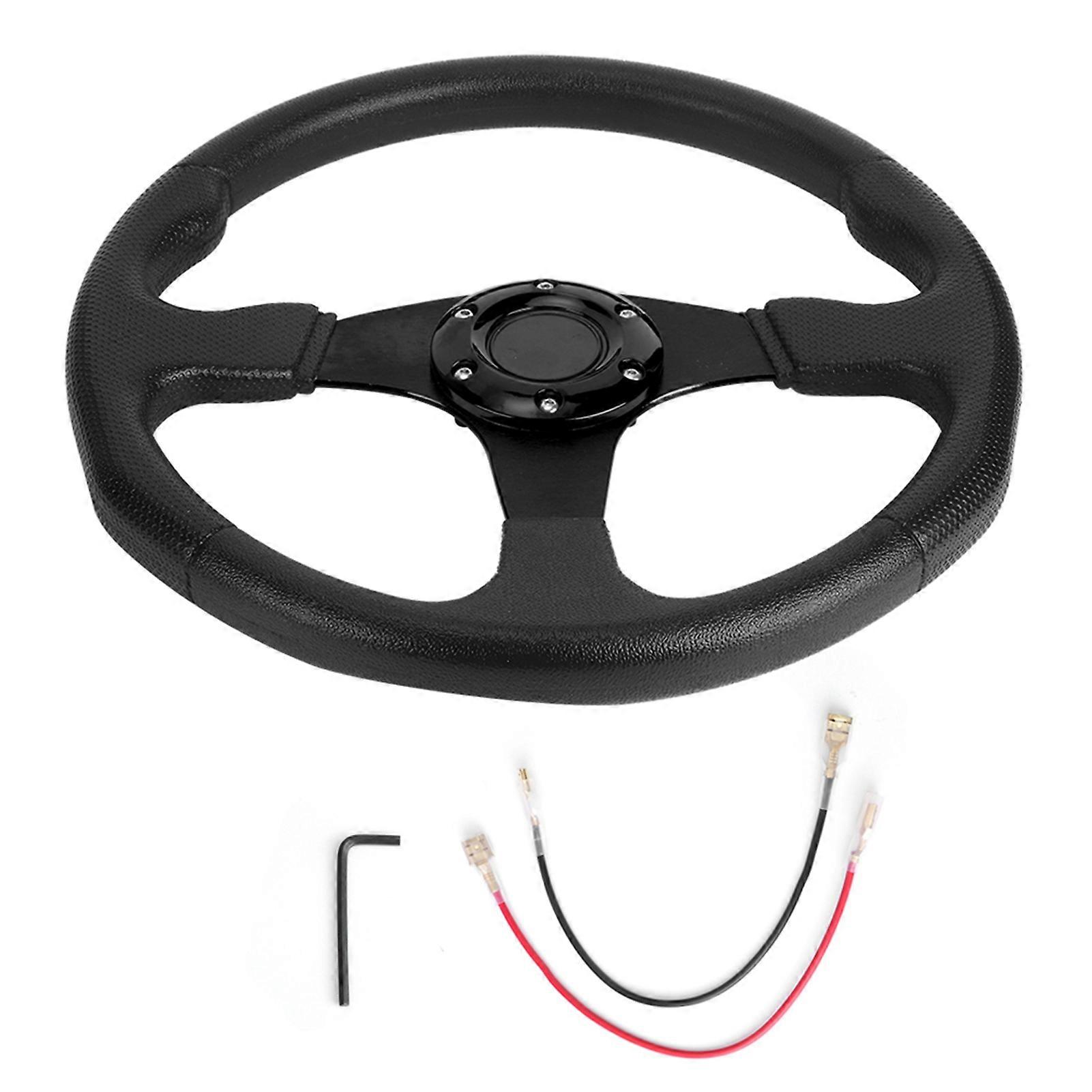 Features: 1.High quality PU and aluminum alloy material, antiwear, rustproof and long durability. 2.Appropriate size, light weight, excellent and comfortable hand touch feelin. 3.Fine workmanship, stylish and generous, upgrade your car interior style. 4.Compatible with most standard hub adapter, universal for most vehicle. 5.Simple installation, no modification requierd, don't need to use much time on installation. Specification: Condition: 100% Brand New_x000D_ Item Type: Steering Wheel_x000D_ Material: Aluminum Alloy + PU Leather_x000D_ Optional Color: Black, Blue, Red_x000D_ Diameter: Approx. 350mm/14in PackageList: 1 x Steering Wheel2 x Harness1 x Wrench
