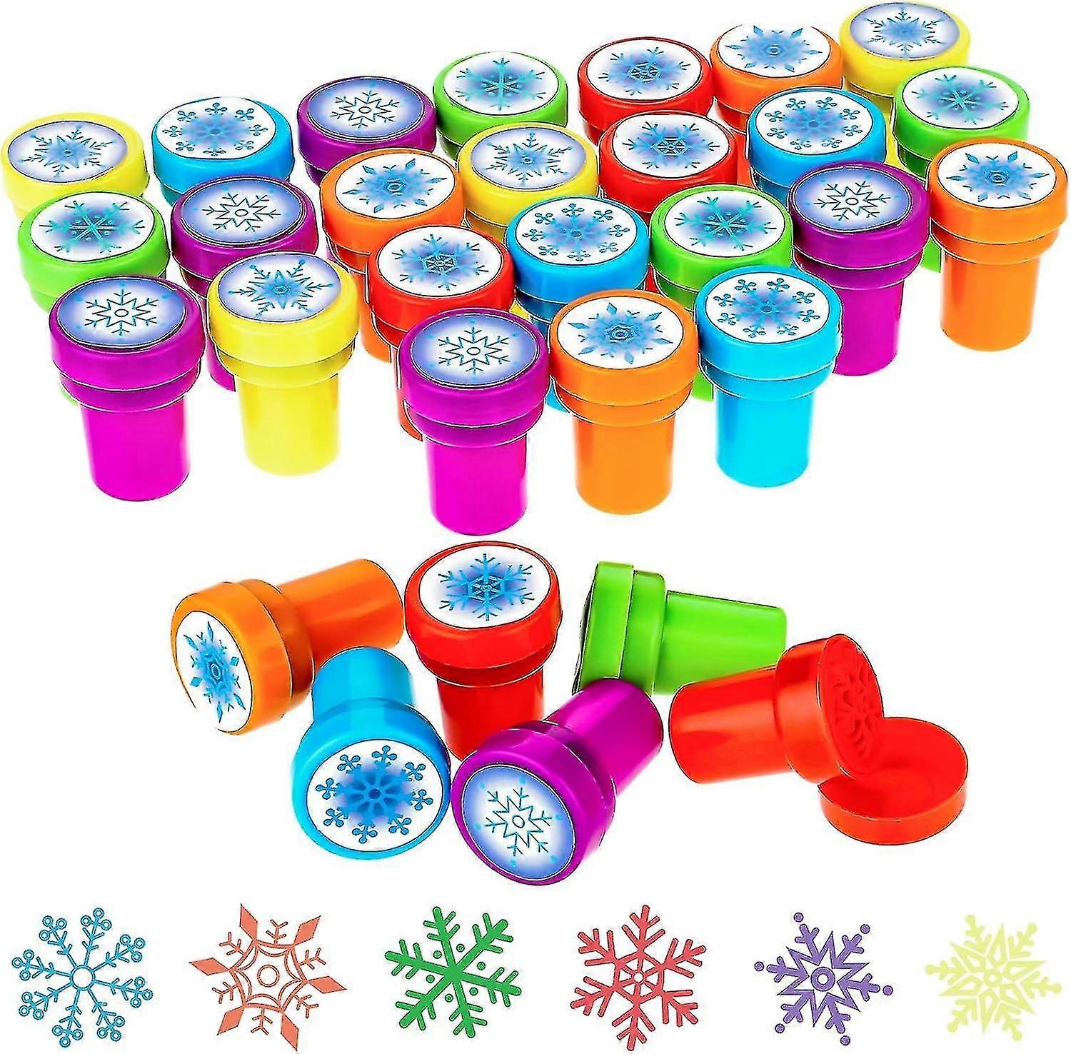 36 Pieces Winter Snowflake Stamps Plastic Colored Stamps Assorted Snowflake Stampers For Card Making Christmas Party Favors, 6 Styles