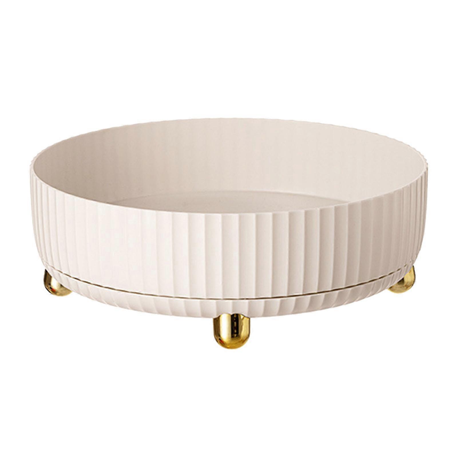 360 Degree Rotating Storage Tray Innovative Light Luxury Spice Organizer Turntable Makeup Organizer for Kitchen Dressing Table Cream White