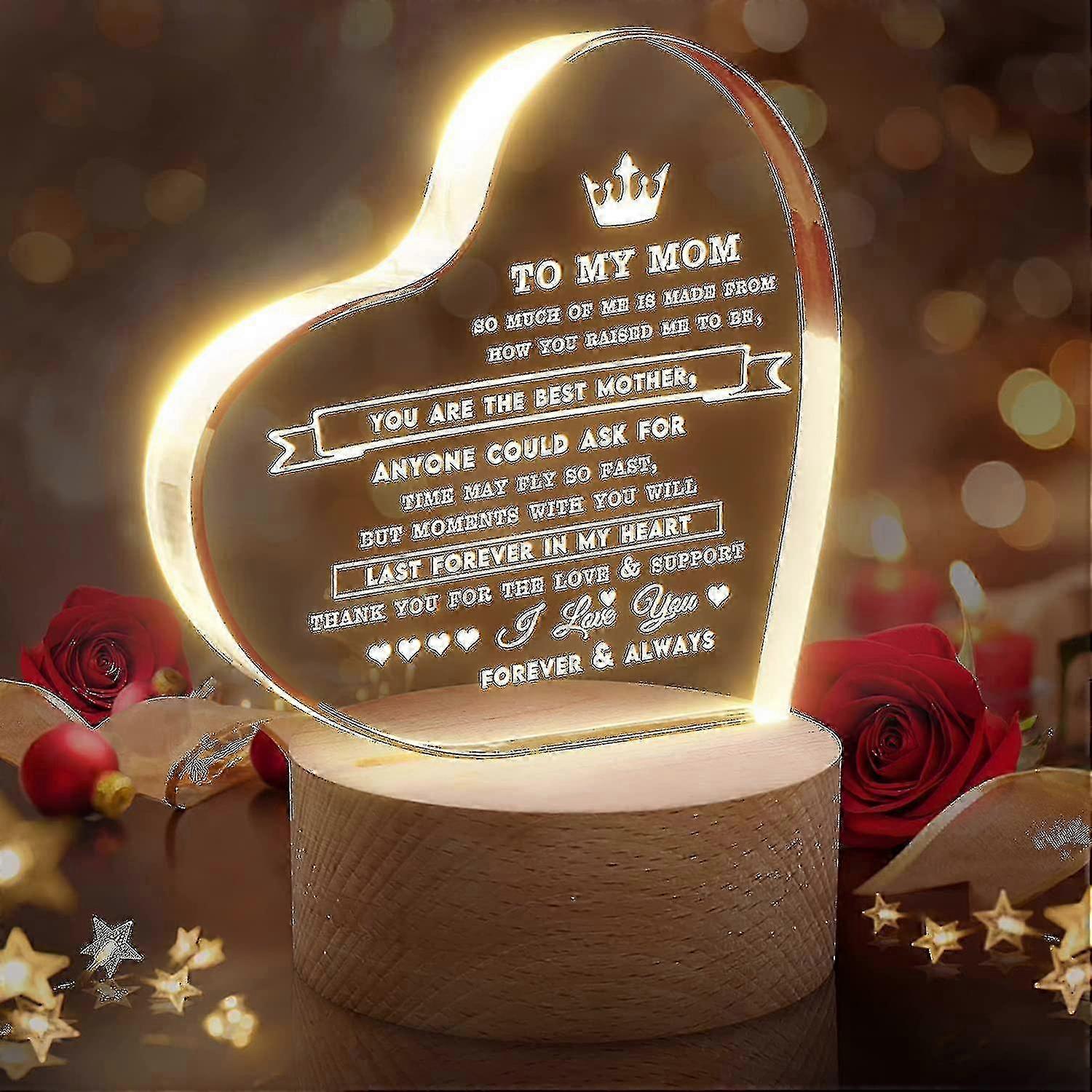 3.9-Inch 3D Engraved Acrylic Night Light with USB Power Ideal Gift for Mom on Mother's Day or Birthday