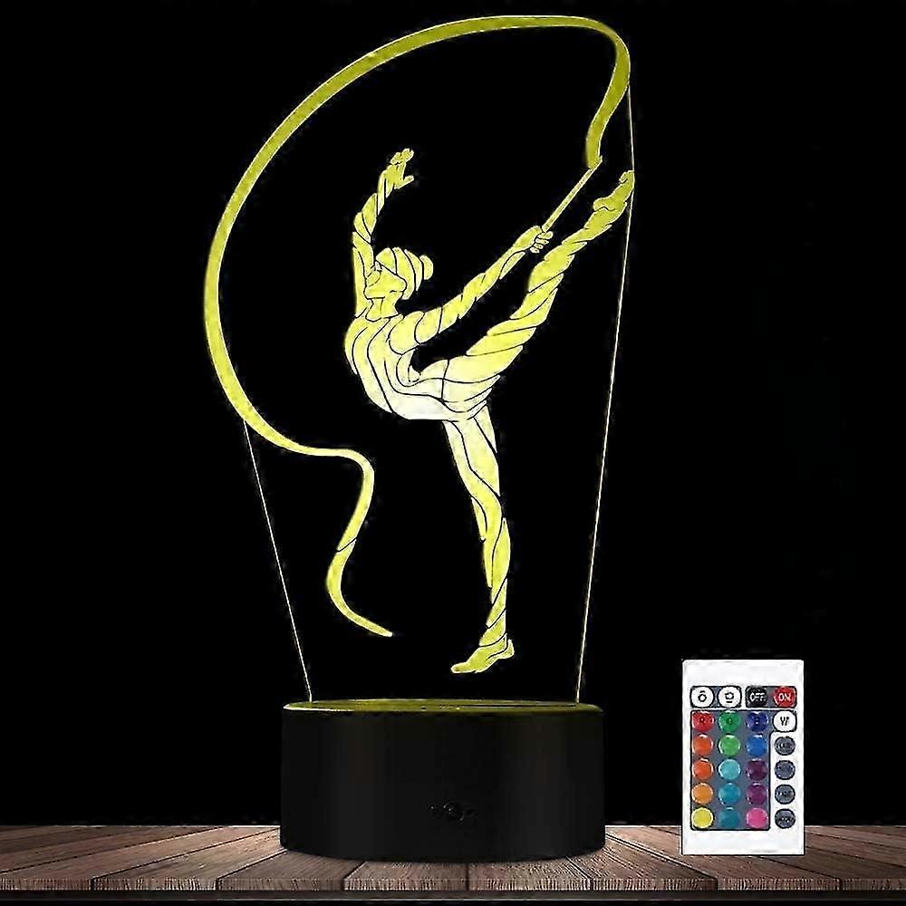 3D Gymnastics Remote Control 16 Color Night Lights Illusion Acrylic LED Table Bedside Lamp Children Bedroom Desk Decor Birthday Gifts Toy for Kids