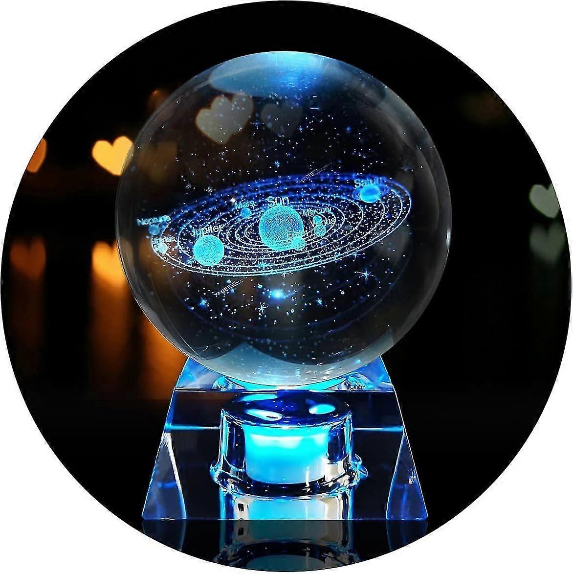 3d Solar System Crystal Ball With Led Base, Astronomy Night Light For Home Decoration, Girlfriend, Wife, Mother, Women On Valentine's Day, Birthday, A
