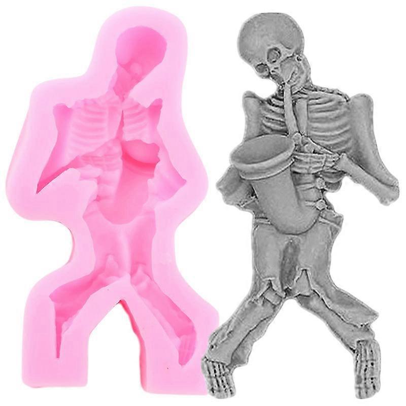 3d Skeleton Skull Cake Silicone Mold Halloween Fondant Cake Decoration Tool Musical Instrument Chocolate Candy Gumpaste Moldspink1pcs