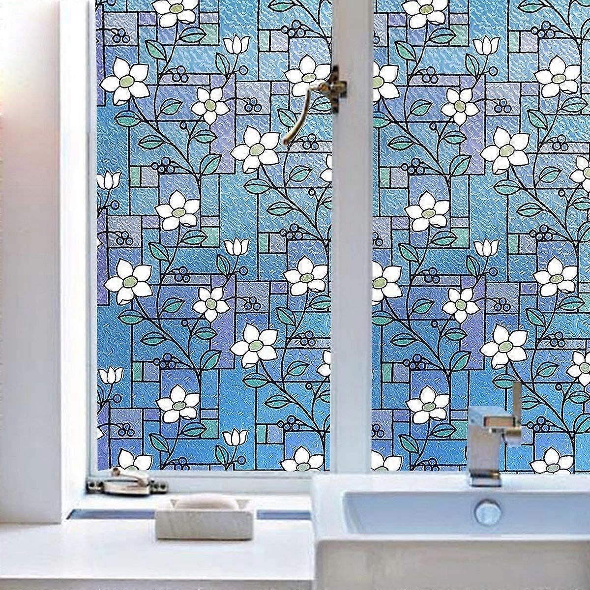 3D Frosted Window Sticker Privacy Vinyl Static UV Protection(45x200cm) 1pc Classic Floral Pattern