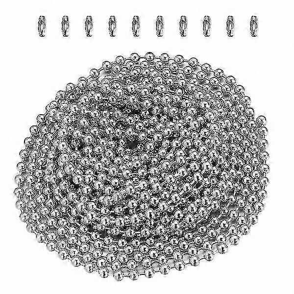 3M Ball Chain with 10 Connectors, 2.4mm Diameter Metal Bead String for DIY Crafts and Home Projects