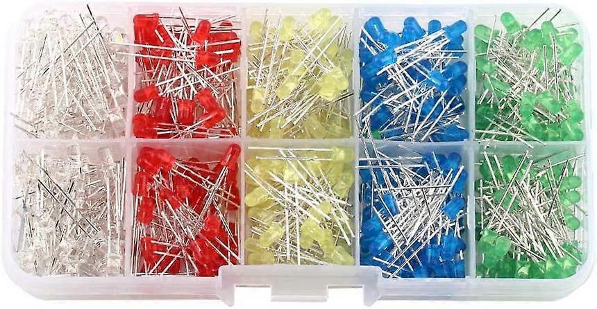 3mm Color Diode,Akozon 500pcs 3MM 5MM LED Light Emitting Diode Set,Electronic Components Assortment Kit,Round & 5 Colors