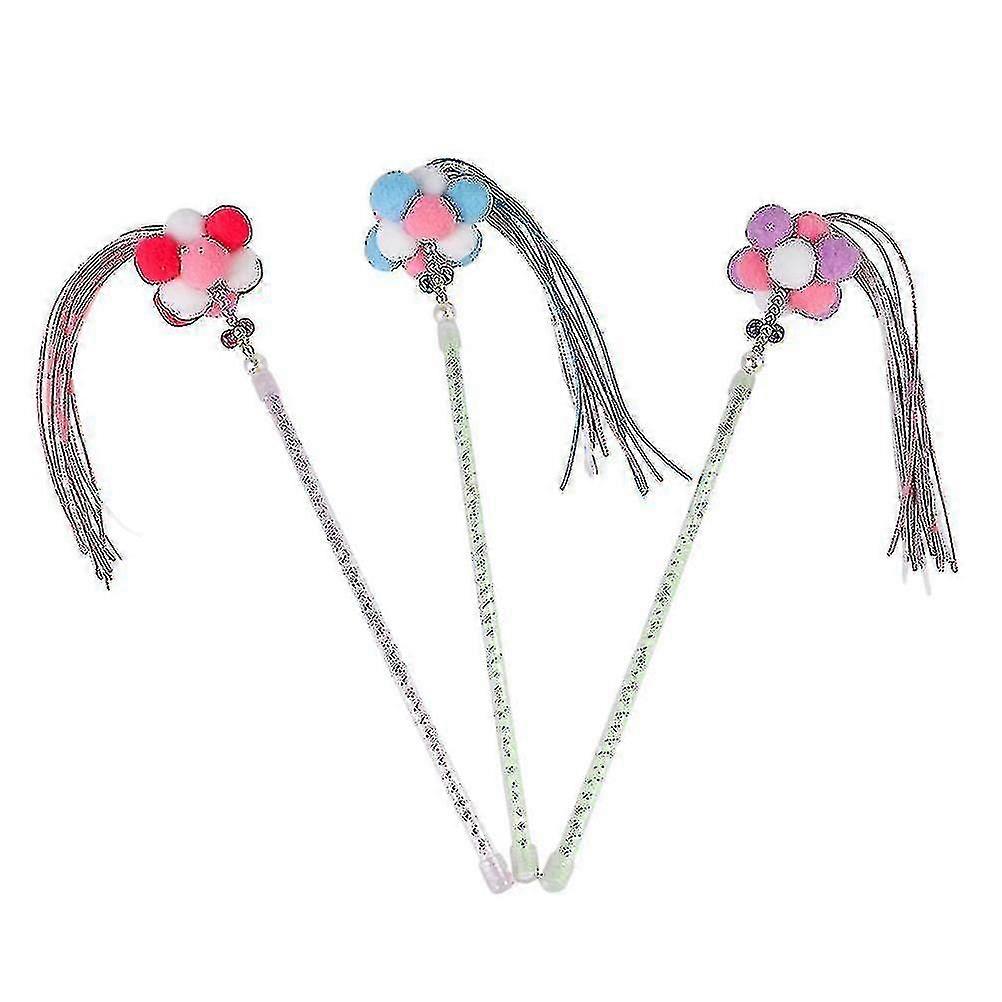 3pcs Cat Toys Cat Teaser Wand Cats Interactive Stick Tassel Plastic Rod Wand For Cat Pet Random Colo