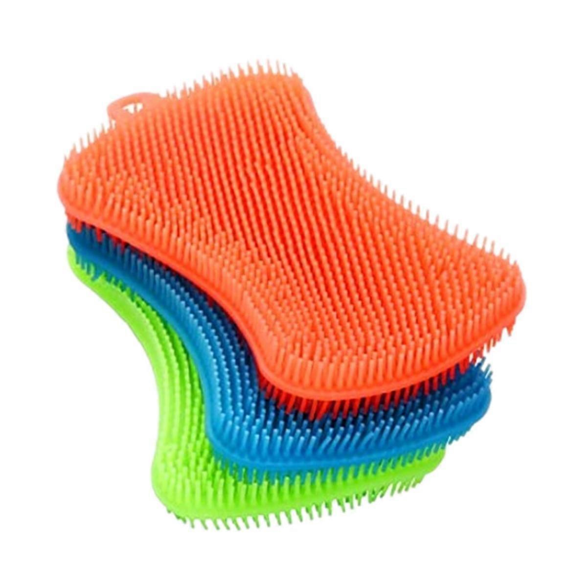 3PCS Silicone Dish Washing Brush Pot Pan Sponge Scrubber Silicone Scouring Pad Fruit Pot Pan Wash B