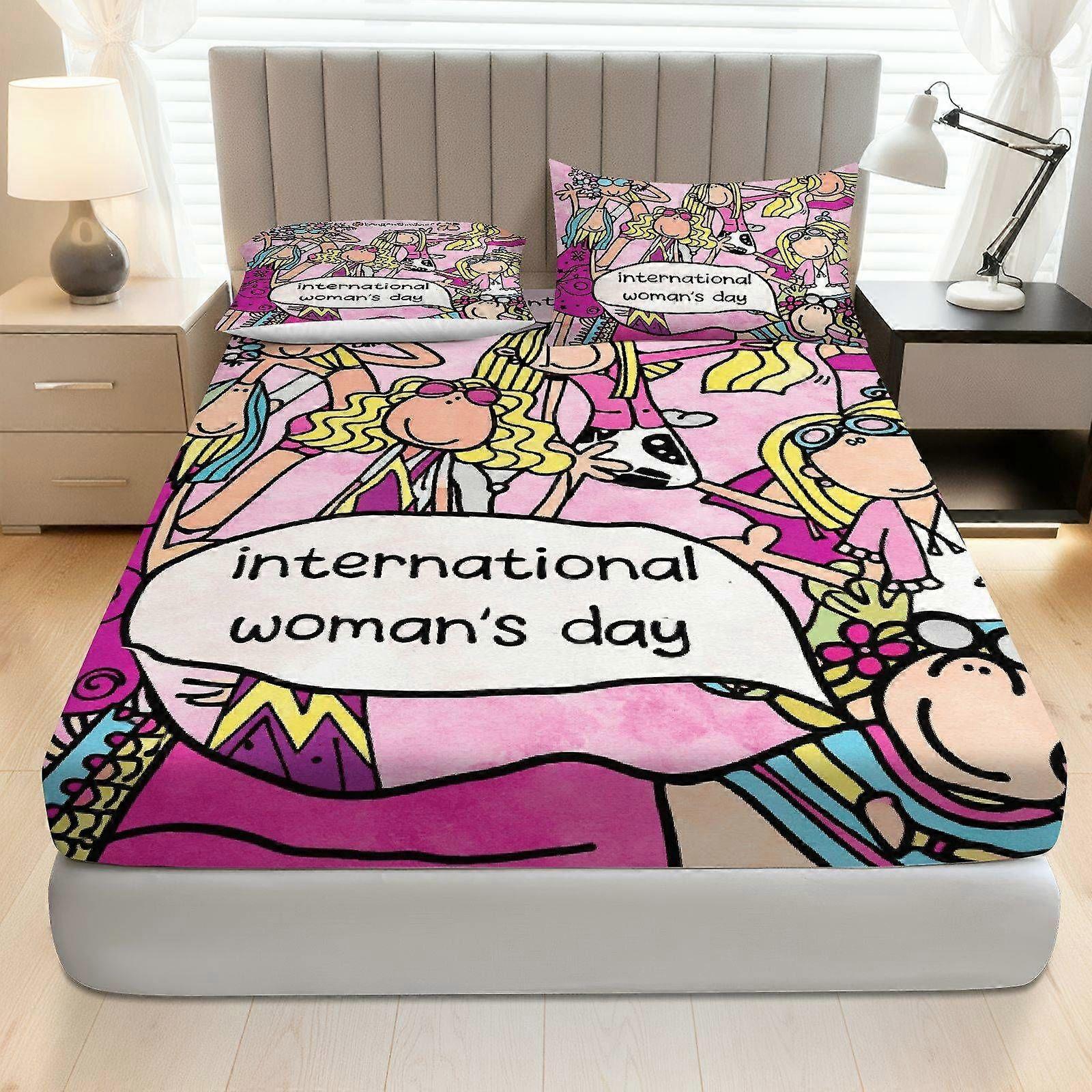 3pcs Colorful Women'S Day Fitted Sheet Set Coreless Polyester
