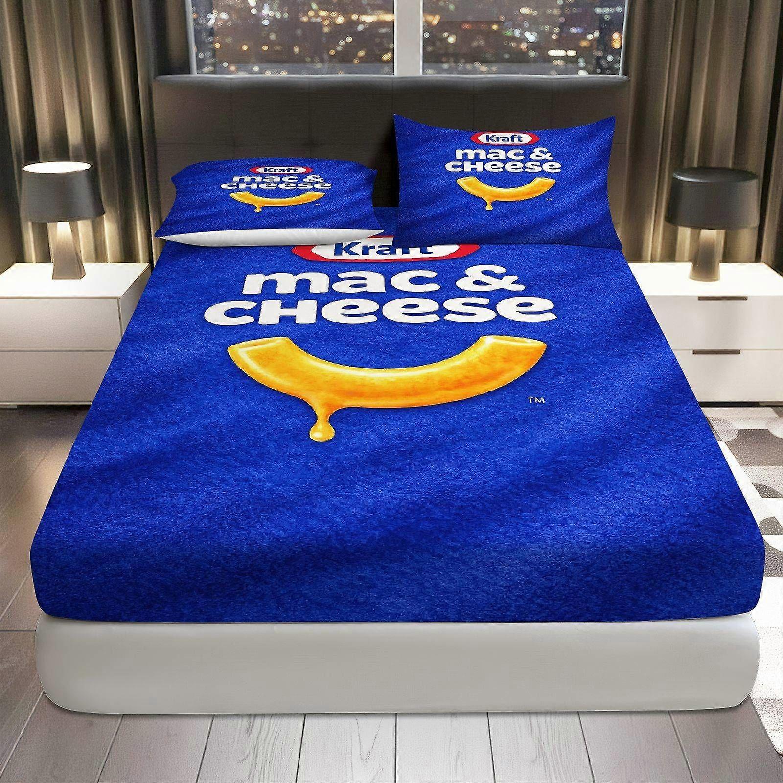3pcs Mac Cheese Fun Blue Fitted Sheet Three Piece Set