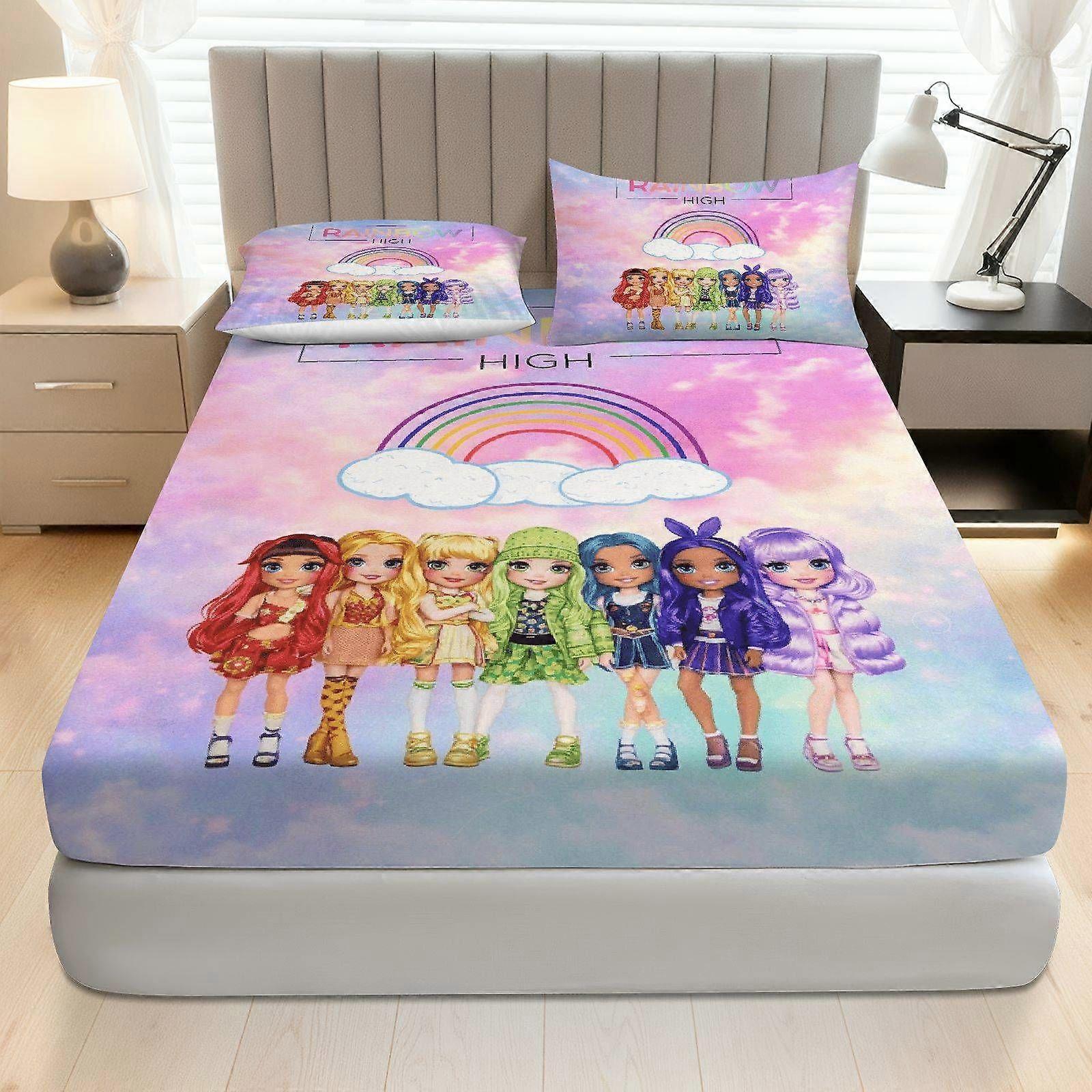 3pcs Rainbow Girl Fitted Sheet Set Coreless Festive Theme