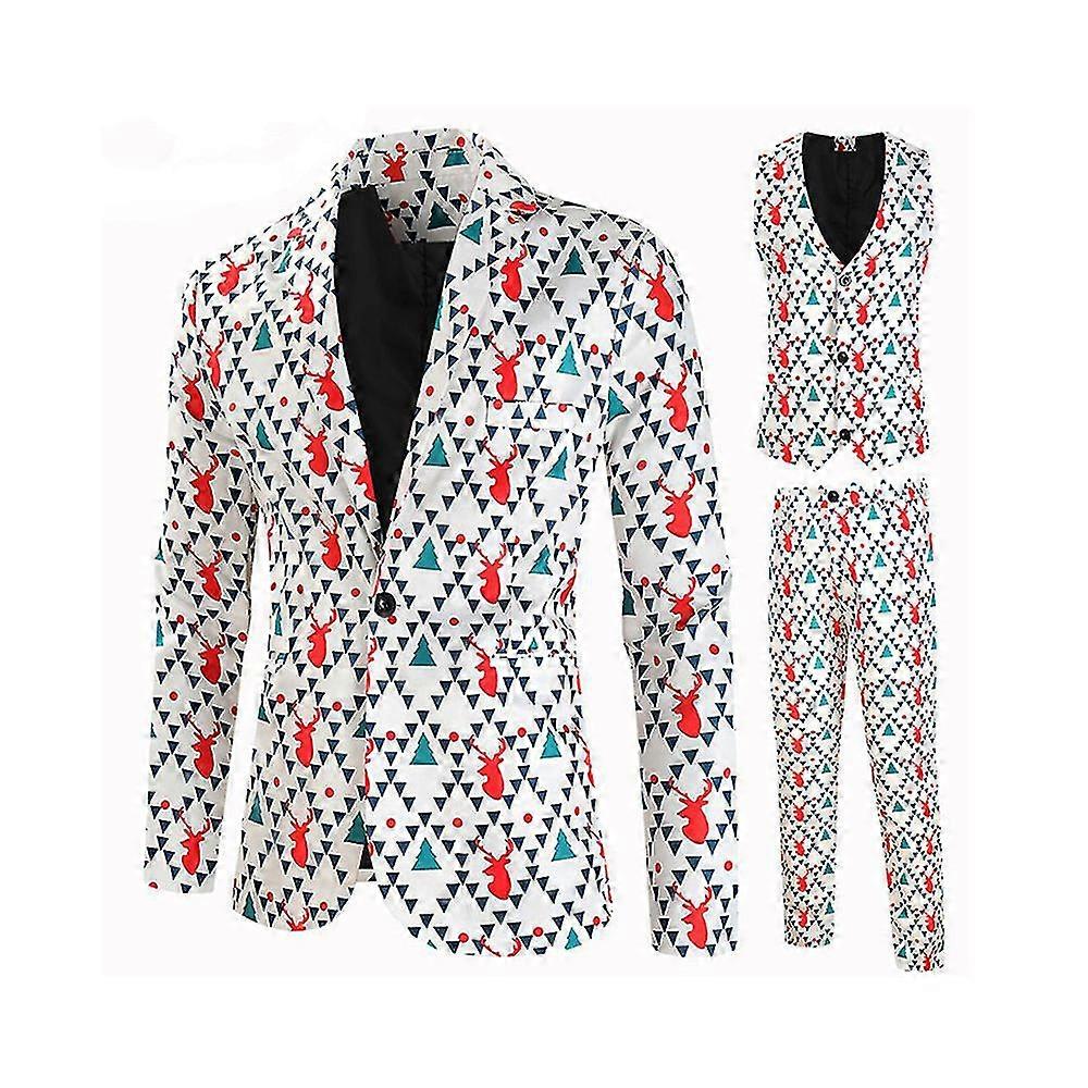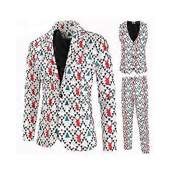 3pcs/set Mens Suit Christmas Party Printed Lapel Coat Blazer Pants Vest
