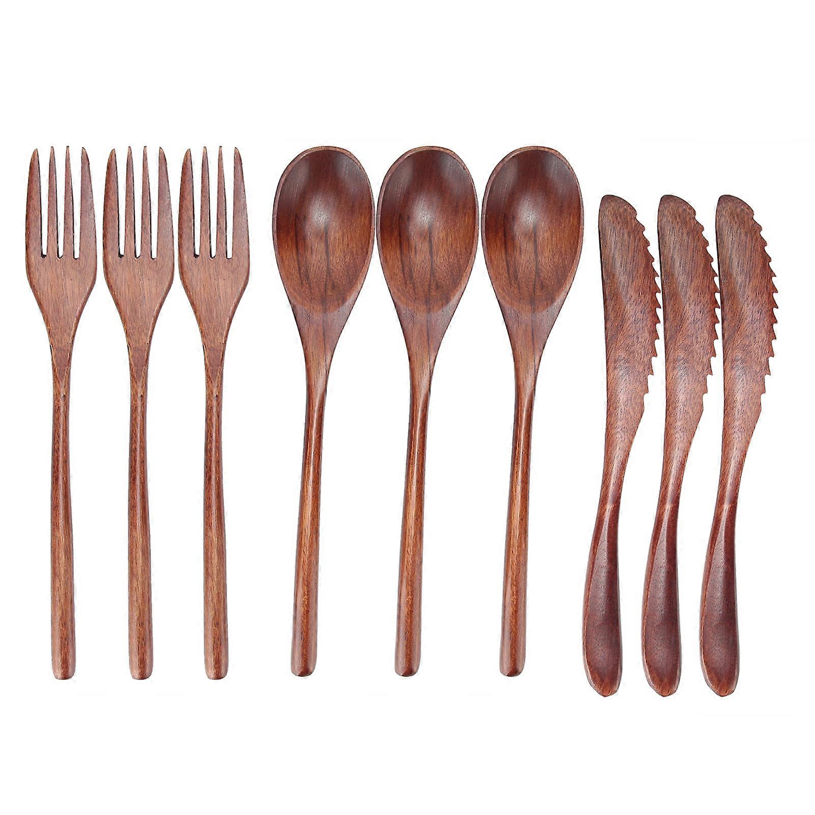3Set Tableware Wooden Fork Spoon Knife Kit Kitchen Cutlery for Home Cafe Restaurant