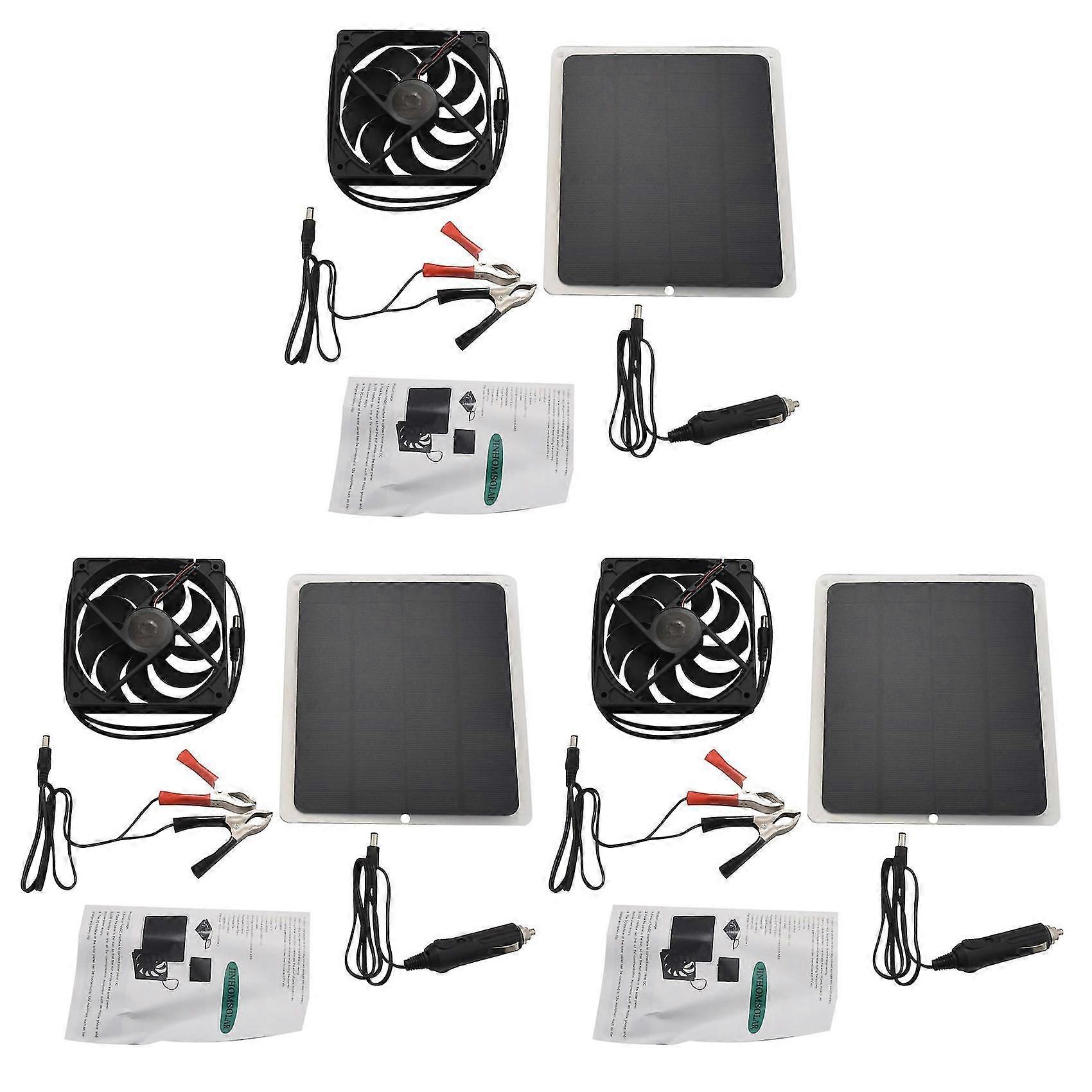 3x 10w Solar Panel Powered Fan Mini Ventilator For Dog Chicken House Greenhouse Rv Roof