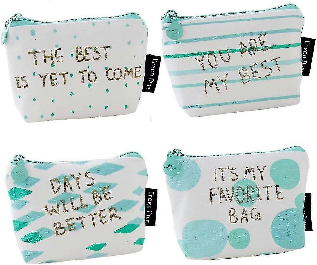 4 Pcs Canvas Coin Purse Zipper Change Pouch Mini Wallet Gift For Women And Girls (green Geometry)