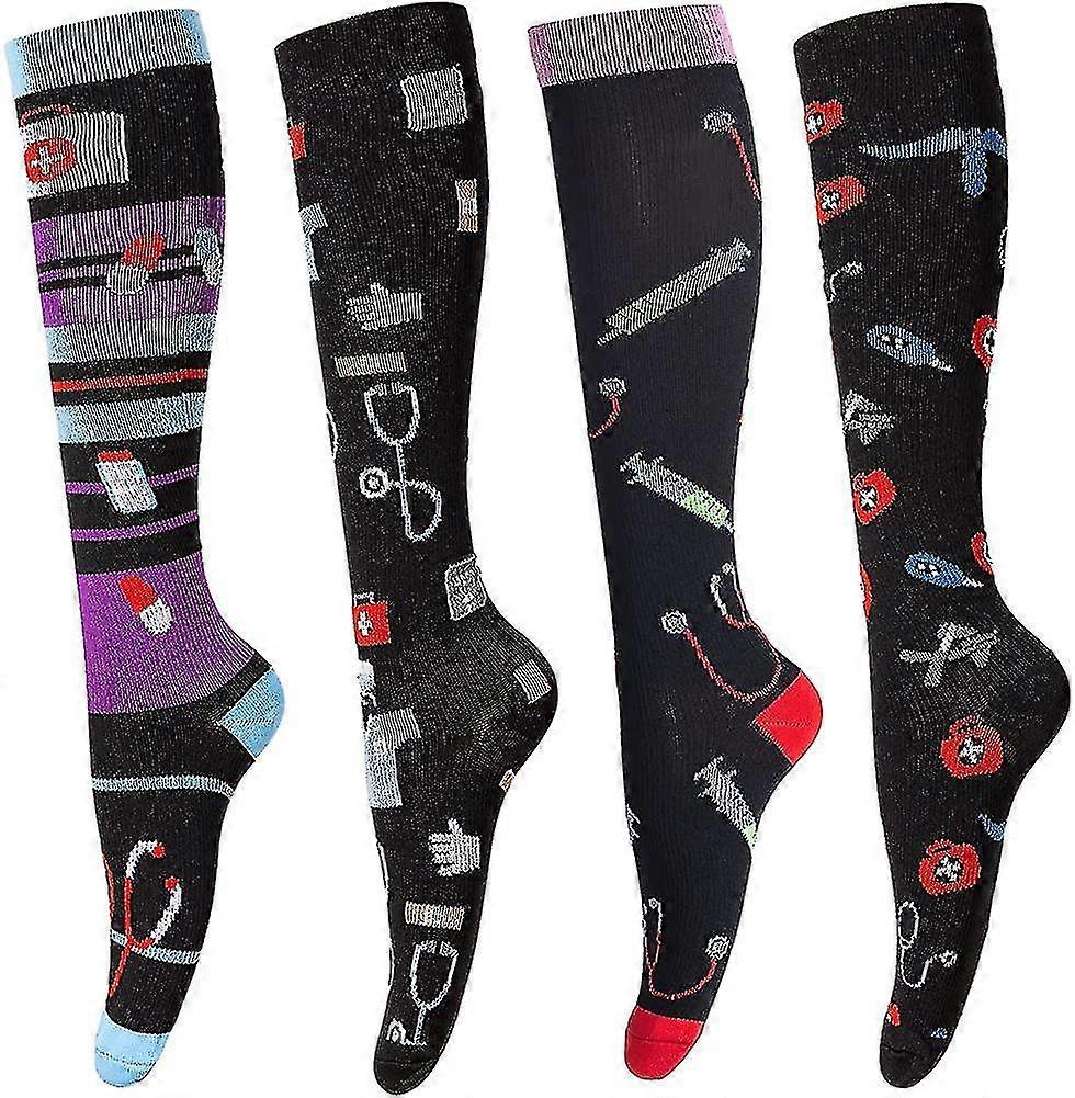 4 Pairs Medical Compression Socks For Nurse,fun Knee High Circulation Socks