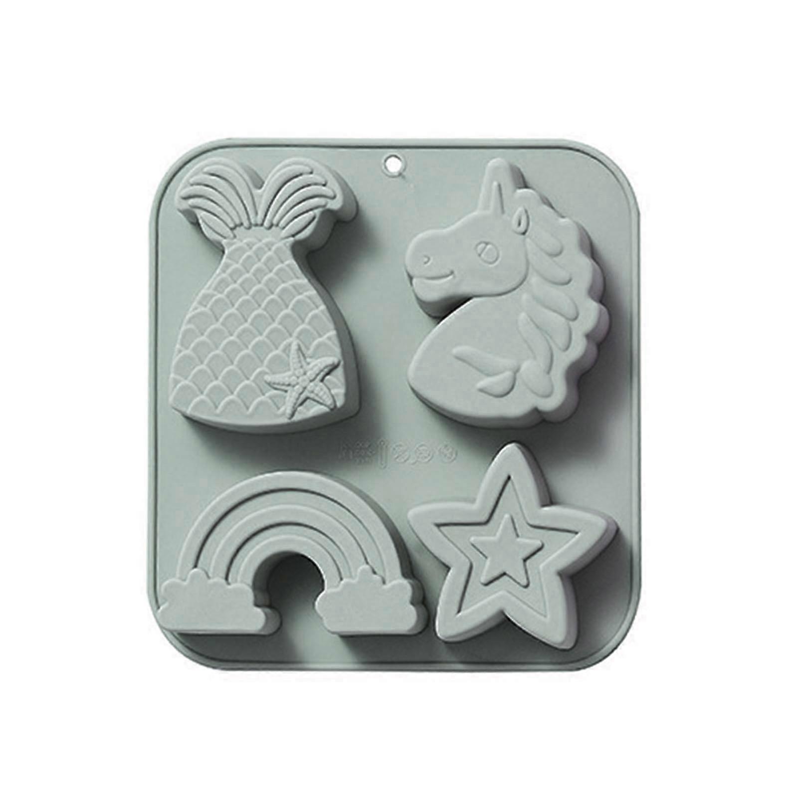 4 Cavity Unicorns Fondant Cake Decorating Silicone Mold Pastry Chocolate Mould Candy Ice Cream Mold DIY Baking Tool Blue